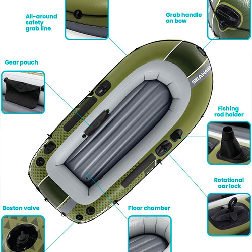 | سایر ویژگی ها | وزن بسته بندی: 9.1 کیلوگرم دارای سطح نشیمنگاه مواج دارای اهرم ماهیگیری دارای کیسه مخصوص حمل وسیله های کوچک |